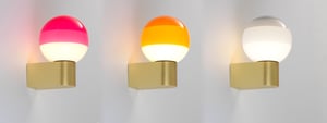 This collection starts out in two sizes and several colours: green, amber, pink, white, black and blue. Each lamp illuminates with different shades of light depending on the paint colour, creating a wide range of ambient lights